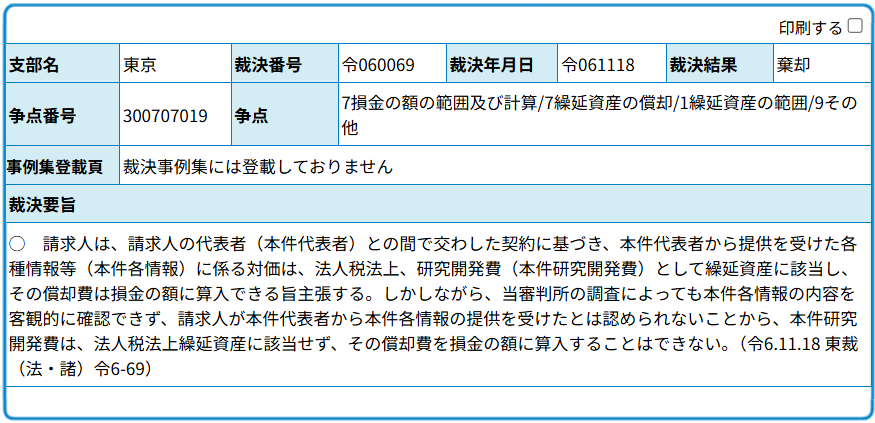 (1) 相手側が相手側の代表者から各種情報の提供を受けたとして計上した研究開発費(本件各研究開発費)は、法人税法上の繰延資産に該当し、本件各研究開発費に係る償却費の額を損金の額に算入することができるか否か。また、本件各研究開発費の額は、消費税法上の課税仕入れに係る支払対価の額に含まれるか否か。