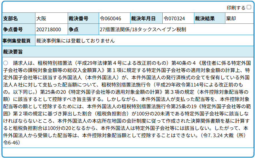 外国子会社合算税制の適用の可否(①居住者該当性、②特定外国子会社該当性、③適用対象金額を算出する際、他の特定外国子会社からの配当を控除すべきか否か)