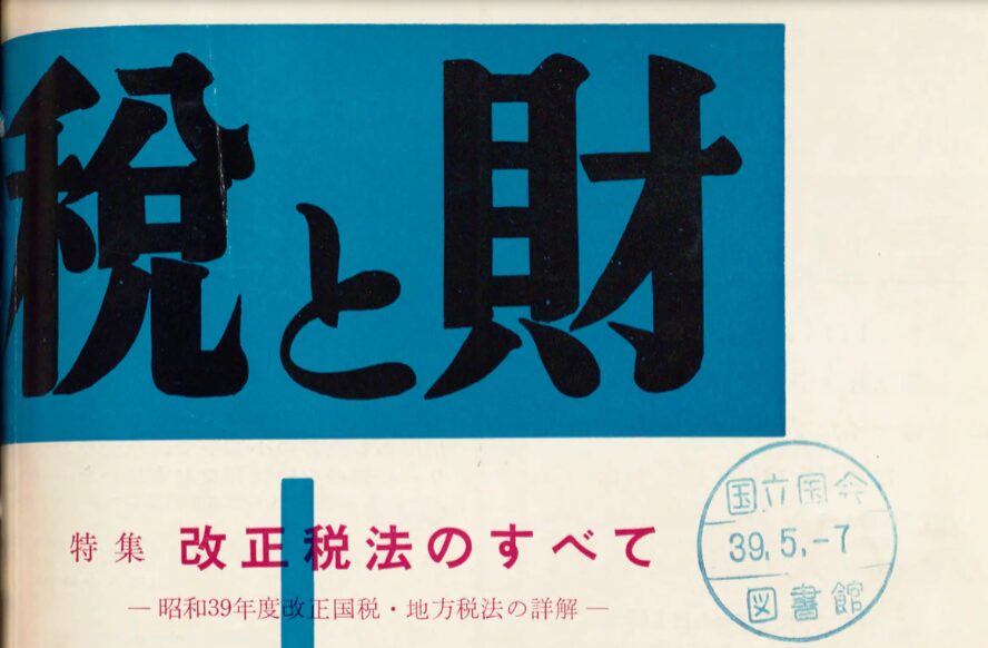 | 昭和39年度 | 財団法人日本税務協会 | 「税と財」228号(昭和39年4・5月合併特別号) | 国立国会図書館デジタルコレクション(ログイン必要) |