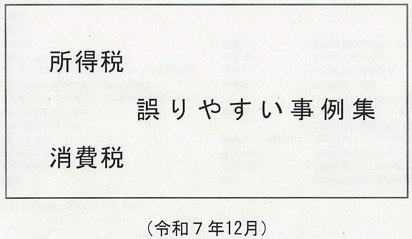 東京国税局の個人課税課・消費税課が作成した「所得税消費税誤りやすい事例集(令和7年12月)」を開示請求により入手しました。確定申告の際の参考にしていただければと思います。